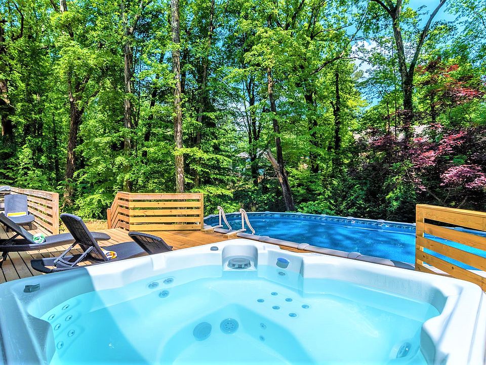 Outdoor Paradise: Enjoy a fully fenced backyard with a spacious patio, outdoor furniture, BBQ gas grill, and a large swimming pool with a deck and hot tub. The pool is open May-September; the hot tub is available year-round.