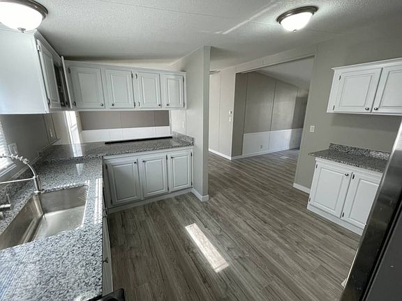 This stunning remodeled home has it all! Walk into approx. 1,700 sqft. of space with all new laminate flooring and new carpet in the bedrooms! The floor plan makes this home welcoming with a spacious kitchen, dining area, and living room. You will fall in love with the kitchen, with all stainless steel appliances and lots of prep and storage space! It has stunning granite countertops and freshly painted cabinets. The primary bedroom is spacious with a grand bathroom with garden tub & separate shower. Don't miss the HUGE walk-in closet; it's a must-see! Pictures don't do it justice. Three additional spacious bedrooms and the guest bathroom located on the opposite side of the home allow for everyone to have their own space and privacy. The laundry room has an additional sink and tons of room for storage. Freshly painted interior throughout and a skylight that offers tons of natural light! Outside there's a shed and parking for 3 cars. Make this home yours today! Financing is available for qualified buyers. Call or text today for more information. ¡Esta impresionante traila remodelada lo tiene todo! Hay aprox. 1,700 pies cuadrados de espacio con pisos laminados nuevos y alfombras nuevas en las habitaciones. El plano abierto hace que esta traila sea acogedora con una gran cocina, comedor y sala. Te enamoraras de esta gran cocina, con electrodomésticos de acero inoxidable. Tiene encimeras de granito bellamente y gabinetes recién pintados. La espaciosa recamara principal con un closet enorme! Las tres amplias habitaciones adicionales y el baño de visitas ubicado en el lado opuesto de la casa, permiten que todos tengan su propio espacio y privacidad. ¡Esta casa esta lista para que la hagas tuya! Financiamiento disponible para compradores calificados. Llame o envíe un mensaje de texto hoy para obtener mas información.