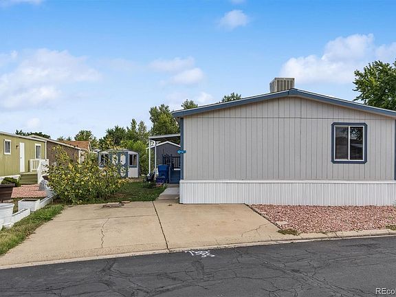 This spacious 4-bedroom, 2-bathroom double-wide offers nearly 2,000 square feet of comfortable living in the Front Range Manufactured Home Community. Listed as-is at $125,900, the seller is very motivated—so bring your best offer! With an open-concept layout and vaulted ceilings, the main living area feels airy and bright. The large family room is perfect for relaxing or entertaining, and a ceiling fan helps keep things cool year-round. This home offers two primary bedrooms, each generously sized to accommodate any furniture arrangement. The main primary suite features laminate flooring, a walk-in closet, and an en-suite bath with a double-sink vanity, walk-in shower, AND tiled soaking tub. On the opposite side, the second primary bedroom sits near three additional bedrooms, giving you the option to reconfigure or even create a fifth bedroom thanks to all the space this home provides. The second bathroom includes a full-sized shower insert and single vanity (no bathtub). The kitchen is well-equipped with a large pantry, while the dedicated laundry room provides extra storage, washer/dryer hookups, and overhead cabinetry. A 10x12 storage shed offers plenty of room for lawn equipment, bikes, or hobbies. Seller will also leave behind extra cans of interior paint (Glidden Country Yellow, purchased August 2025). With 3 ceiling fans, 3 skylights, and vaulted ceilings, this home is designed for comfort and natural light. Community amenities include a pool, playground, and easy access to local shopping, dining, and transit—all just steps from Centennial Elementary School. Plus, with community manager approval, you’ll have the opportunity to make the landscaping your own and truly customize the outdoor space. With room to spread out, flexible living options, and plenty of potential to make it your own, this home offers both value and opportunity. CALL TO SCHEDULE A SHOWING TODAY!