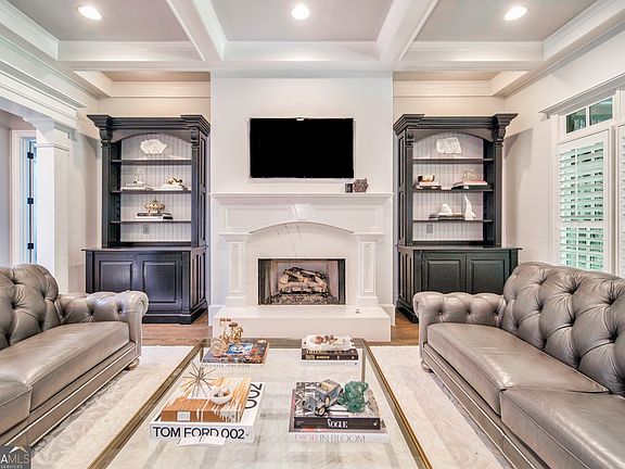 Private luxury oasis on nearly 2 acres in the exclusive gated community! Tucked away in a serene, wooded setting, this 7-bedroom, 6-bathroom estate offers unmatched privacy while still being just minutes from top-rated schools, shopping, dining, entertainment, and historic Kennesaw Mountain. Step inside to a grand, 2 story foyer filled with natural light. This home features plantation shutters, designer light fixtures and timeless details throughout. The gourmet chef's kitchen is a centerpiece for gatherings, featuring stainless steel appliances, double oven, farmhouse sink, updated cabinetry, quartz countertops and backsplash. A fireside keeping room off the kitchen, fireside family room with coffered ceilings and built in bookcases, and covered patio create multiple options for relaxing or entertaining while enjoying the wooded views off the main living space. The oversized owner's suite on the main level is a private retreat with coffered ceilings, a fireside sitting area, his-and-hers closets, and a spa-like bath. Upstairs offers four spacious bedrooms, three full baths, and a large bonus/media room with built-in desks-ideal for kids, guests, or work-from-home flexibility. The terrace level provides the ultimate guest or entertainment space with two additional bedrooms, a full bath, a media/game room, and a fully equipped gym. Recent updates include refinished hardwood floors, additional finished office space upstairs, tile flooring throughout the basement, new red oak flooring in upstairs bedrooms and media room, recently replaced (3) HVAC units and (2) water heaters, refinished fireplaces, and upgraded landscape lighting. Outdoors, the expansive fenced backyard delivers true privacy, offering space for a future pool, play area, or simply relaxing while enjoying the natural sounds of nature. With its rare combination of privacy, luxury, and convenience in one of West Cobb's most coveted gated communities, 2885 Julias Way is a home you don't want to miss. Schedule your private tour today!
