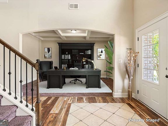 This stunning home in Vineyard Place sits at the end of a peaceful cul-de-sac, offering exceptional privacy and ample space across three expansive stories. Featuring 6 spacious bedrooms and 4 luxurious baths, this residence is perfect for an extended family or those who love to entertain. Upon entry, you're welcomed into a grand open-concept living area that blends comfort and style, with the main floor offering a guest bedroom ideal for visitors or multigenerational living, as well as a dedicated office or study for working from home. Three separate living spaces provide abundant room for both relaxation and gathering. The chef-inspired kitchen flows effortlessly into a bright sunroom, perfect for morning coffee or enjoying natural light, while a formal dining room easily accommodates large gatherings. A cozy dining nook provides an inviting space for everyday meals, ensuring this home meets every need from casual family dinners to special occasions. The third level offers an additional living area suitable for extended family or children who need their own space, and can also be used as a media room or a private retreat. This newly painted home is waiting for his new owners..