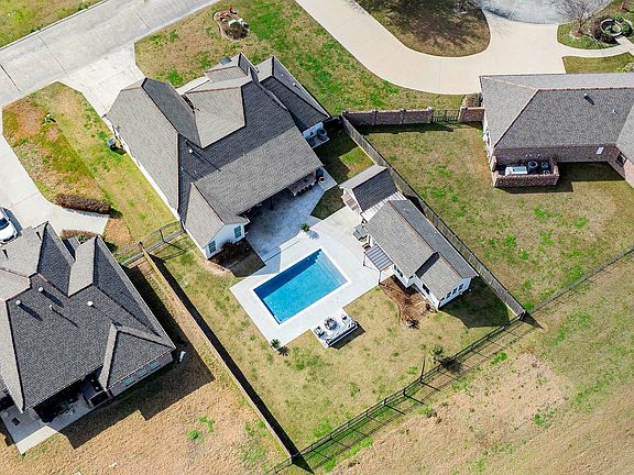 Welcome to 2885 Quiet Oak Place in Oak Ridge Subdivision! This beautifully crafted white brick home with brown accented shutters and gas lanterns exudes charm and elegance. Built in 2008, this spacious 4-bedroom, 3-bath home offers 2,446 square feet of living space with exceptional features throughout plus a detached heated/cooled suite in the backyard! Step inside to discover real wood flooring and ceramic tile, complemented by varied ceiling heights. The open floor plan includes a gas fireplace, a dedicated home office, and a well-appointed kitchen with stainless steel appliances, a gas stove, custom cabinetry, a dishwasher, undermount sink and recessed lighting. All new light fixtures add a fresh, modern touch. The primary suite boasts cathedral ceilings and a luxurious ensuite bath featuring a smart shower and standalone tub—no knobs required for effortless temperature control. One additional bedroom and full bath are located upstairs, with a dedicated central AC unit for the second floor. The main home is serviced by two AC units, plus a whole-home gas generator for uninterrupted comfort. Outside, you’ll find an in-ground pool with a beautiful patio, all within a fully fenced backyard featuring a mix of wood and wrought iron. The outdoor kitchen is perfect for entertaining, complete with a commercial VersaPower burner, refrigerator, and ample space for cooking. A mosquito misting system, serviced monthly by MistAway, adds to the comfort of outdoor living. Additionally, the home is wired for surround sound, and storm shutters provide added protection. A unique bonus to this property is the Accessory Dwelling Unit (ADU), built in 2018. This flexible space includes a closet and a full bath, with plumbing and gas lines capped but still available, allowing it to be converted into a guest suite, office, or whatever suits your needs. It is currently being utilized as a home gym. There is also a detached 122sqft storage shed for extra convenience.