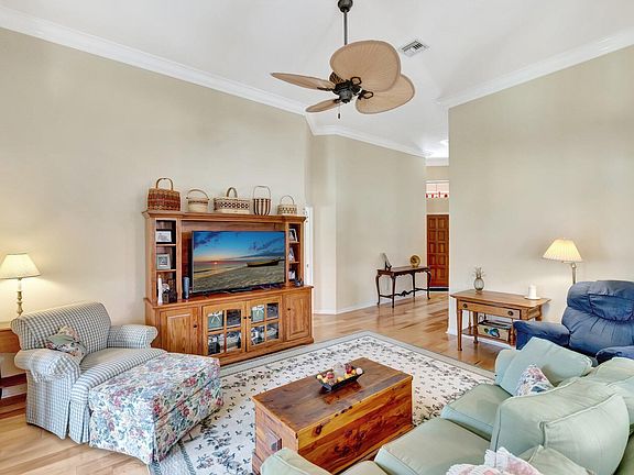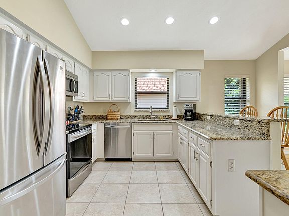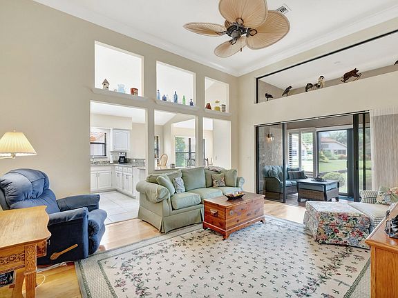 Beautifully maintained 3/2 home in Palm City just waiting for a new owner!! This updated home features an open floorplan, split bedrooms, an enclosed patio for use all seasons and a gorgeous lakeview! The kitchen has stainless steel appliances and granite countertops. The large primary suite has a walk-in closet, two sinks in the bathroom as well as a separate shower and tub plus a water closet! The high ceilings help the home feel much larger than it is and has crown molding. Neutral colors allow you to decorate to your taste! Roof is 2016 - so no worries there! The gated community has a community pool, tennis and is walking distance to shopping and dining. Come see it before it's gone!!