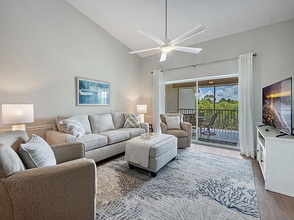Seasonal rental, 30 day minimum, available Nov.and Dec.,2025, and April of 2026. Deal directly with the owner on this site and save from paying the middleman fees! Newly renovated 2/2 PLUS DEN 3rd floor with elevator and garage near Naples. Turnkey furnished. 3 smart TV's. Be the first to live in this desirable end unit condo with arched windows, cathedral ceilings, luxury vinyl plank floors, designer kitchen with quartz countertops, all new appliances including full size washer and dryer, fresh paint throughout, 2 new bathrooms. The den with french doors can be used as an office (WIFI included), or third bedroom. Enjoy the gulf breeze while having coffee or cocktails on the screened lanai with slider access from the living room and master bedroom. Heated pool and hot tub just steps away from the building. Walk to restaurants or bicycle to several beaches 1.5 miles away. Located west of Rt 41, and south of Bonita Beach Road on the border of north Naples. Minutes away from Mercato to the south, and Coconut Point Mall to the north. Walking trails with scenery along a lake, multiple gyms nearby, and shopping galore. Plenty of storage with walk in closet in master bedroom, two linen closets, double wide pantry closet, and garage with cabinet and attic storage. Extra parking available. Bermuda Lago is a gated, safe, quiet community of four buildings. All you pay is rent and FL tax of 11.5%. No Airbnb or Vrbo fees.