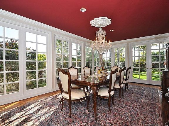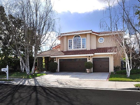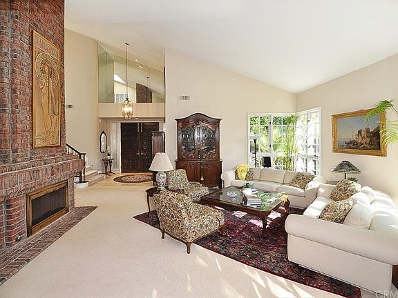 Located in a quiet cul-de-sac, this beautiful home exudes elegance & luxury. You'll be captivated by the 2-story light-filled entry & the spectacular sweeping staircase with custom wrought iron railing. A 2-way fireplace separates the enchanting living room from the cozy library with an impressive built-in bookshelf. The dining room has a stunning Schoenbeck crystal chandelier, and the floor-to-ceiling beveled glass windows evoke a sun room, bringing the outside in. French doors open to the ultimate entertainers' backyard, professionally landscaped with pool/spa, built-in BBQ, and outdoor speakers. The chef's kitchen has a vast expanse of granite countertops, stainless steel appliances (including Subzero refrigerator), pull-out cabinets and ample counter seating, in addition to the sunny breakfast nook. The adjoining family room has a fireplace & wired surround-sound, and the 1st-floor bedroom with ensuite bath has direct exterior access. Upstairs is the spacious master bedroom and huge walk-in closet; relax by the fireplace, and enjoy the Catalina Island view from the balcony. The spa-like master bath has double sink areas, jetted tub and separate marble shower. On the same floor the 3 other bedrooms have high ceilings, ample closet space with custom shelving, and share a double-sink bathroom. The three-car garage with new wood-like door adds to the home's refined appeal and storage space. This gorgeous home is walkable to schools and parks, and close to shops nearby.