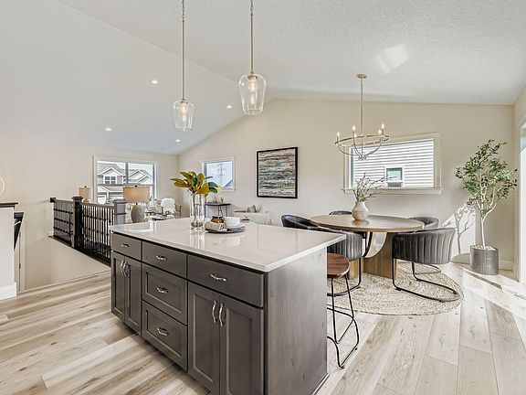 Unique 3-level home featuring owners suite at main level. Total 5 bedrooms, 3 bathrooms and 2,546 finished square feet. Main floor laundry, open kitchen with stainless steel appliances, quartz tops, large center island that can accommodate 4 stools. The open-concept layout flows seamlessly into the family room, perfect for gatherings. Two family rooms provide flexible living space, including one with a fireplace. High-quality craftsmanship throughout. Additional highlights include a 3-car garage and convenient layout for everyday living. October Possession Possible!