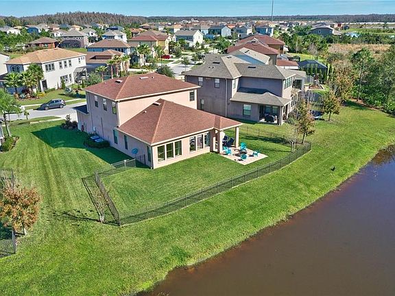 Located in the desirable community of Estancia on an OVERSIZED LOT with WATER & CONSERVATION VIEWS! This Elegant 4 bedroom, 2.5 bathroom, 2-car garage, 2-story home has an additional extended 4 feet added to rear of house increasing the Total Sq. Ft. to 3,029 SF. The backyard is FENCED and has a covered lanai area and fire pit; perfect for outdoor entertaining. Large quartz island in kitchen with sink and eating space, stainless steel appliances, double ovens, solid wood cabinets, tile back splash, huge walk-in pantry, and separate breakfast room area AND Dining room. Upgraded flooring though out first floor. Laundry room on first floor. Trey ceilings in dining room and master bedroom. Pre wired for surround sound. Great floor plan with Master Suite on the first level. Master bathroom has double quartz vanities & sinks, garden style tub, & huge separate shower. Upstairs has 9' ceilings, large LOFT area, 3 large bedrooms and bathroom with double vanities. MUST SEE to appreciate all the extras! This community offers every amenity; Olympic sized pool with water slide, state of the art fitness center, lighted tennis/basketball courts, playground, park, nature trails, events, social clubs and more. Estancia is conveniently located to Wiregrass Mall, restaurants, local hospital and excellent schools.