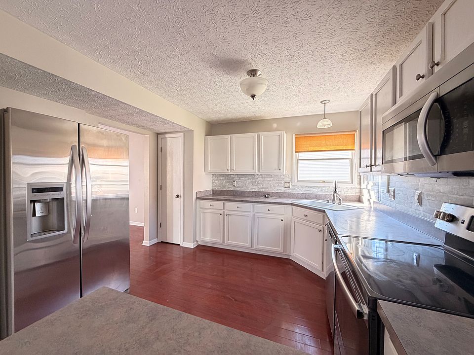 Walk-out to the deckStainless steel appliancesLaminate floorsLike-new carpetAbundant cabinet space