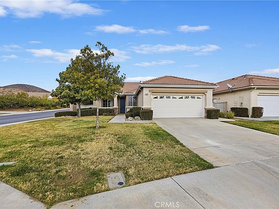 This charming home at 28878 Emerald Key Ct. is located on a Corner Lot in the Gated Oasis 55+ Resort Community in Menifee. You will fall in love with this delightful Open Floor Plan which offers Single Story Living. This home is located on a quiet Cul-De-Sac, located close to the Clubhouse and convenient to the East Entrances off Menifee Road. This TWO Bedroom and Two Bath home has an abundance of Natural Light and is warm and welcoming in every sense. Features of the home include a Large Island Kitchen, great Counter Space, Island Seating, Pull Out Shelving, Refrigerator, Washer & Dryer, French Doors on both Rooms, Walk-In Pantry, Dining Room, Fireplace with Custom Mantel, Media Niche, Crown Molding in the Second Room, Primary Ensuite with a Double Vanity, Walk-In Shower & Large Walk-in Closet. The Oversized Garage has space for a Workshop or Golf Cart Parking. The living space continues into the beautiful Low Maintenance Private Backyard with a Paseo View that is perfect for entertaining. The HOA includes Front Yard Maintenance, Water & Trash. There is NO Mello Roos property Taxes. The Community offers quick access to the public Menifee Lakes Country Club, a 36-hole Championship Golf Course. The community offers it all; unmistakable elegance and a vibrant, active resort lifestyle. The ultimate in affordable luxury, this community offers a bounty of indoor and outdoor activities. All this and more, in a setting of the Menifee Valley which is conveniently located near Medical Services & Southern California wineries, mountains, beaches and deserts.