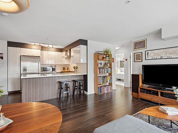 Experience modern living in this beautifully designed 3-bedroom, 2-bathroom residence featuring a very well-thought-out floorplan. The open layout creates a spacious feel, perfect for entertaining. This unit is situated on the north-west corner of the building, away from the traffic on Renfrew. Step outside to the communal rooftop deck, ideal for BBQs with friends while taking in stunning mountain views. This well-maintained home is adorned with stylish finishes, elevating your living experience. Located just steps away from shopping, restaurants, and recreational activities, this property perfectly combines convenience and comfort. Don't miss this opportunity to call it home! Includes 2 parking spots, 1 spacious locker. 2 dogs, 2 cats or one of each are permitted.