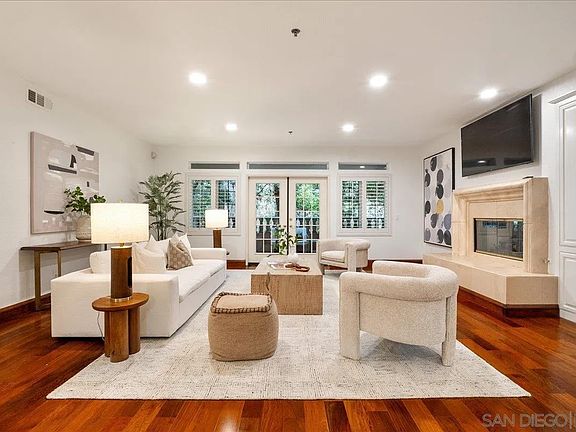 Exceptional Opportunity – Just $576/Sq Ft in La Jolla Shores. Nestled within the exclusive, gated St. Tropez community, this stunning residence offers the perfect blend of privacy, luxury, and convenience. Ideally located just minutes from UCSD, popular dining spots, entertainment, and the beautiful La Jolla Shores beach, this home perfectly embodies the desirable coastal lifestyle. Spanning an impressive 2,516 sq ft, this single level home features 3 spacious bedrooms and 3 full baths, with two of the bedrooms offering private en-suite baths and walk-in closets. With ample room to spread out and relax, space will never be a concern here. A dramatic rotunda entry with soaring 9-foot ceilings greets you upon arrival, setting the stage for an open, light-filled floor plan. The expansive living room, complete with a cozy fireplace, flows seamlessly onto a large private balcony, where you can enjoy peaceful, panoramic views of the surrounding trees and lush landscape. Designed with both comfort and sophistication in mind, this home is a tranquil sanctuary for those seeking refined living in one of La Jolla’s most desirable locations. With its rare combination of serene surroundings, generous space, and close proximity to the best the area has to offer, this exceptional property truly stands apart.