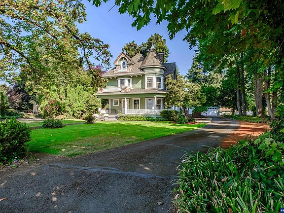 Stunning Queen Ann Victorian beauty. 5 bed rm,3 ba home built in 1889 on almost 1 acre surrounded by mature landscaping.High ceilings,beautiful woodwork,detached 3 car garage, circular driveway,city water,well for irrigation,newer roof,electric forced air heat.Enjoy life on 1 acre with all the convenience of living in town.Elementary and middle school 0.2 mile,1.5 miles McKenzie River launch ramps,1 mile to hwy 126, 2 miles to Interstate 5.History link http://www.GillisHome.com