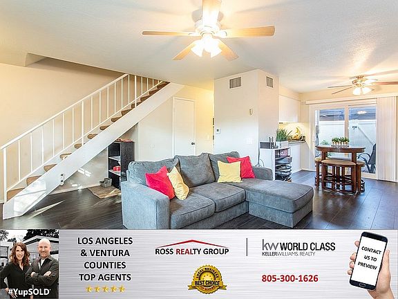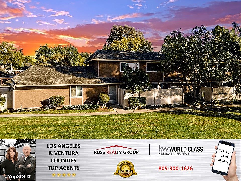 ***Call 805-300-1626 for a private showing*** Exclusively represented by The ROSS REALTY GROUP at Keller Williams. Nestled in a tree lined community of Agoura Hills, this tranquil townhome has 2 bedrooms, 1.5 baths, two outdoor patios, providing everything you need to balance life and work. New $8,000 custom windows, screens, and sliders with transferable lifetime warranty provides temperature efficiency. In the kitchen find granite counters with white cabinetry and an enclosed laundry area. Newer laminate floors span the living area. Updated bathrooms and extra outdoor storage will come in handy. Community pool, spa, clubhouse and plenty of outdoor open space. Top rated schools, markets, dining, hiking, and biking await you. Only 16 minutes to the beach and just a short drive to the San Fernando Valley. For more information, visit The Ross Realty Group at https://agreatlistingagent.com/ or call 805-300-1626. #YupSOLD
