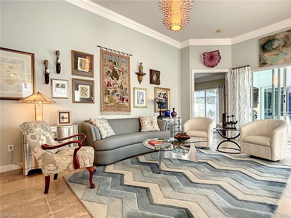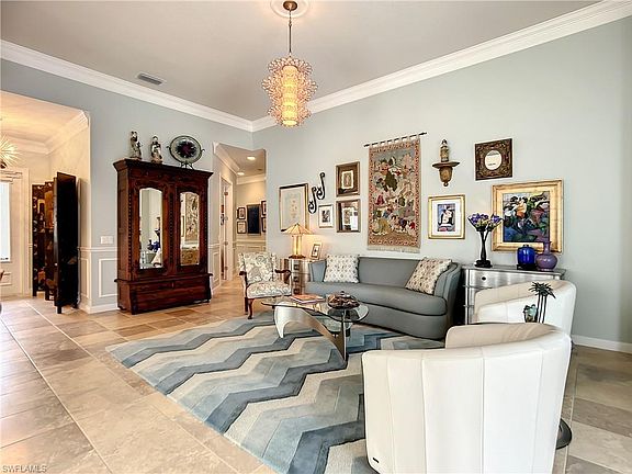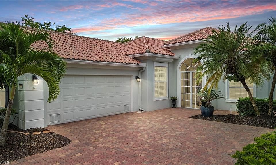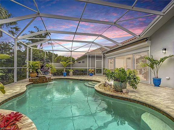 Welcome Home to VILLAGE WALK OF BONITA SPRINGS! You have found your "Forever Home". Lovely 3 Bedroom + Den Pool Home lakefront awaits you with breathtaking sunset views! Open, Spacious and Stunning home offers the perfect blend of luxury, comfort and functionality. Beautiful Features: Crown Molding, Custom Lighting and Fans throughout, NEW Kitchen with Wood Cabinets/Soft Close Drawers, NEW Range and Microwave, NEW Dishwasher, Dakota Double Sink and "Leathered" Granite Counter Top,NEW HAVAC 2021, NEW Coretec Luxury Vinyl in Primary Bedroom, Windows have Custom Plantation Shutters, Custom Silhouette Shades and Electric Storm Shutters, Florida Room/Sun Room completely enclosed with Heating/Cooling unit, and Porcelain Tile Floor that opens direclty onto the Brick Paver pool deck. This home lives large for entertaining family and friends and meticulously maintained. Enjoy Amenities Galore for ALL ages at Town Center:Resort Style Pool, Lap Pool, Fitness Center, Tennis, Bocce, Pickleball. Basketball, Restaurant, Beauty Salon, Spa, Bagel Shop, Car Wash, Lifestyle Director and more! Come live the Florida lifestyle at VillageWalk of Bonita Springs today! Home shows like a model. A MUST SEE!