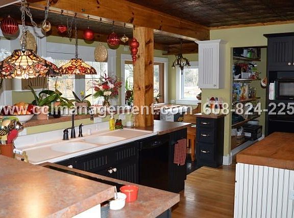 Rent this stunning house in Sun Prairie. Located in a country setting only a few minutes from downtown Sun Prairie, with quick access to US Highway 151 and Madison. This house features an open floor plan with hardwood floors and original woodwork throughout most of the home. It opens with a beautiful kitchen featuring a double sink, tons of counter space, breakfast bar, huge pantry and an island. Off the back is a breakfast nook with a walk-out to the front patio. Dining room is to the left of the kitchen and leads to the cozy living room with classic styling. Main floor also features a 1/2 bath with laundry and a study nook with a built-in desk. Upper level has 3 bedrooms and a full bath. Master bedroom offers vaulted ceilings with wood plank accents, double walk-in closets and a balcony with beautiful views. Outside, this house features stunning professional landscaping. It also has a sun room with a huge stone patio off the back and a 2 car garage. This house has Geothermal Power for great energy efficiency. Sun Prairie Schools. Please take our 3d Tour here: AVAILABLE NOW! ADDITIONAL FEATURES 2 Car Garage, Washer and Dryer, 4 Seasons/Sun Room, Back Patio, Bedroom Balcony, Breakfast Bar, Breakfast Nook, Central Air, Dishwasher, Front Porch, Geothermal Power, Hardwood Floors, Island Kitchen, Modernized Kitchen, Private Backyard, Professionally Managed, Recently Remodeled, Spacious Kitchen, Study Nook w/ Built In Desk. 12 Months +