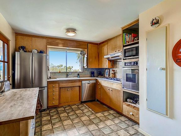 Large paver driveway w/ample parking & turnaround ability. 2 bed+office Private, single-level home on almost a half acre w/SB views, including St. Anthony's Seminary. Kitchen boasts silestone countertops, farm sink, & ss appliances. Remodeled master bath w/ walk-in tile shower & beechwood cabinets. 2ndbedroom nicely sized. Separate office off garage and also a laundry room.