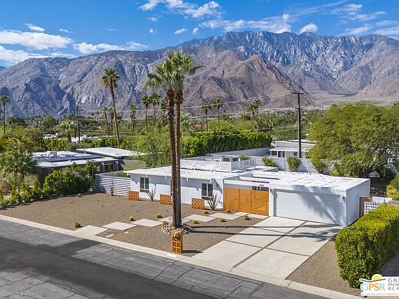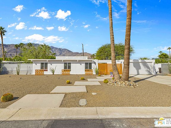 SMASHING Mid Cent Mod, Former home of BOBBIE DARIN and SANDRA DEE (aka Mrs. Bobbie Darin). Spotless, Pristine Alexander built in 1959, Designed by famous duo Palmer and Krisel , 3 beds, 2 baths, Pool, Hot Tub and stunning Western Mountain Views. Gorgeously updated and renovated in 2016 By Christopher Kennedy and was featured in his book "Making Mid Century Modern" to its current casual chic elegance while maintaining its distinguishing Mid Cent Mod Features ; Tongue and Grove ceilings,, Wall of glass, (now dual pane), creating bright light airy spaces. The home comes fully furnished inside and out, it includes promotional posters for "Gidget" and "Mac the Knife" stars. Also a copy of original grant deed when Bobbie and Sandra Darin took ownership, The property has a gorgeous pool and above ground Hot Tub, A bocce ball court for a bit of rowdy good fun and alternately a hammock in a secluded spot for some Zen moments. Property has been a very successful Vacation Rental hosting such luminaries as Designing Women's Jean Smart. The house next door was owned by Milburn Stone who played "Doc" in Gunsmoke and two doors away was home to Jackie Cooper who was "Uncle Fester" in the Addams family. Thus far we have not identified "Cousin It's" house but we are searching!