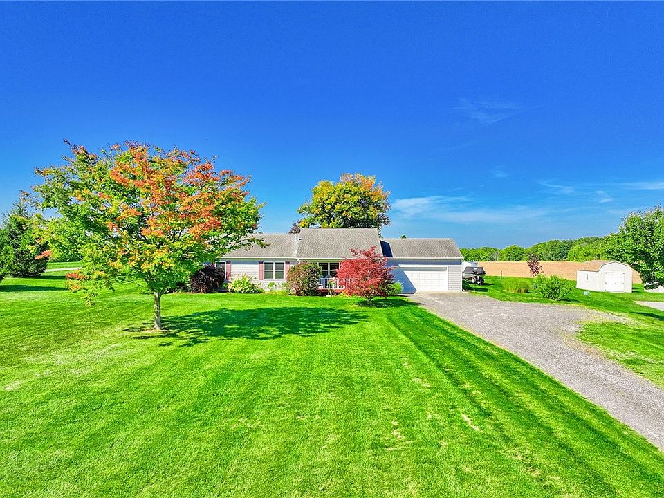 2009 BUILT RANCH SET BACK FROM STREET ON 1.2 ACRES! 1500 SF, 3BD, 2.5BA FABULOUS PROPERTY! Spacious open floor plan with cathedral ceilings. Bright kitchen with all appliances included, first floor laundry, primary suite with tiled master bath, full finished basement for an additional 850sf of living space. For those seeking a little something extra...you'll love the 24X24 ATTACHED GARAGE, HUGE 10X16 SHED AND THE 24X28 DETACHED SHOP BUILDING (shop has heat, electric, hot and cold water, overhead door, insulation and wifi - ability to drive back to outbuilding where there are two 30amp RV outlets on the north side)!! Country style covered front porch and amazing 16X16 covered rear porch overlooking fenced lot, shed and beautiful fields. Showings begin on Thursday, September 18, 2025 at 9:00am and Negotiations begin on Monday, September 22, 2025 at 4:00pm.
