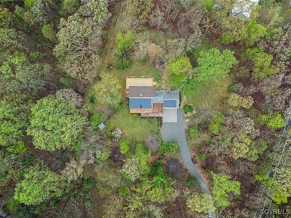 Welcome to 2889 Red Lane Rd, this stunning CONTEMPORARY style home with a 2.5 CAR GARAGE (w/ 16 foot ceilings) is equipped with a FULL SOLAR SYSTEM including battery backup (2021) & a high quality renovation affording you all the luxuries you've been looking for - located in eastern Powhatan! With 3 bedrooms, 2.5 bathrooms, 1960 Square Feet & situated on a 2.5 acre lot this is a one of a kind property! As you pull down the private s-turn driveway you are met w/ tons of curb appeal from the mature landscaping to the oversized front deck w/ pergola & NEW front door. Entering the home you're met w/ NEW Engineered hand-scraped birch hardwood floors throughout (2025). The spacious living room boasts a wood burning fireplace, exposed solid wood beams, tongue & groove pine walls, vaulted ceilings & french doors leading out to the oversized front deck. No detail was overlooked in the fabulous new chef's kitchen w/ NEW soft close/true wood, custom cabinets (2025), NEW marble counters (2025), Island, NEW light fixtures, NEW Samsung stainless appliances (2025), updated half bath & access to the BRAND NEW 42 FOOT x 16 FOOT back deck. The FIRST FLOOR primary bedroom is equipped with NEW carpet, a walk-in closet & en-suite bath w/ a fully tiled stand up shower w/ glass enclosure, HEATED TILE FLOORING, new light fixtures, new commode & new vanity. Upstairs the 2nd & 3rd bedrooms have BRAND NEW carpet, Fresh Paint & are generously sized. The jack & jill bath features new tile flooring, deep delta tub w/ a tile surround, a new vanity & new toilet. FEATURES/UPDATES; NEW 3 ton Trane HVAC system (2025), NEW back deck (2025), NEW Kitchen cabinets, counters, Samsung stainless appliances & lighting (2025), NEW hardwood floors & NEW carpet (2025), Completely updated bathrooms (2025), Newer Roof (2021), NEW Water Heater (2025), NEW crawl space vapor barrier (2025), Newly graveled driveway, Low maintenance vinyl energy efficient windows, Low maintenance vinyl siding, ALL NEW LED lighting & so much more. Detached 10x8 shed for storage!