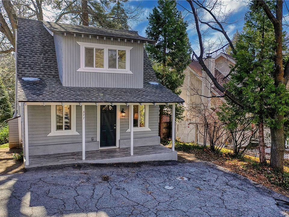 NEW PRICE! Walk to Private Lake Arrowhead from this coveted Palisades Lakeside location. This move-in ready charming home has been totally updated with everything new and ready for you! Level entry on nearly level street-to-street lot with fenced yard. Open concept with new kitchen, quartz counters, new SS appliances, leads to entertaining deck. Main floor living room with fireplace and bathroom. Upstairs is Large master en-suite with extra storage, 2nd bedroom and 3rd bathroom. Home has new flooring, lighting, windows and more. You will enjoy this convenient location with easy access to Lake, nearby Cedar Glen shopping and just minutes to the Lake Arrowhead Village. Home faces Spruce - Access at 377 Spruce.