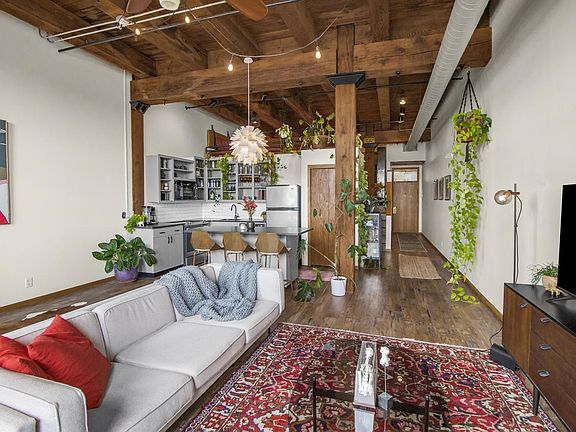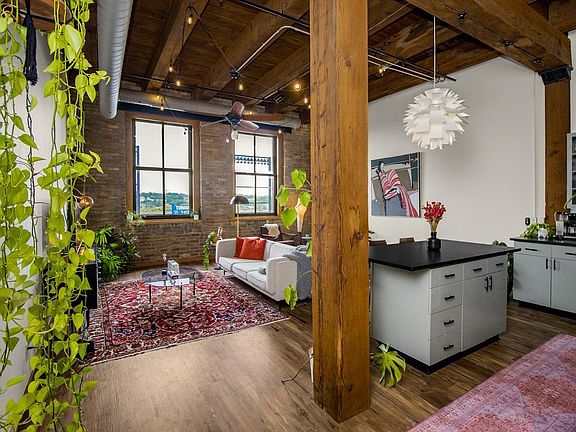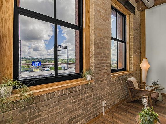 Welcome to Market House Lofts in the heart of Lowertown, dues include heat, AC, Internet! Once a coat, hat, and glove factory, this 123-year-old building was converted to condos in 1983 and offers secure entry, fiber optic Internet, and a 2-story community room with kitchen and new rooftop deck, a 6th floor shared space with an amazing rooftop view. This spacious 1-bedroom features tall arched windows, exposed brick, wood beams, high ceilings, and skyline views. The open kitchen has granite countertops and island seating. Builiding has a load/unload zone. Save money, no car needed with convenient light rail access! Have a car? Affordable parking nearby from $65, plus plentiful street parking. Updates include kitchen, flooring, vanity, tilework, and 2023 new HVAC (assessment paid!). Lofted bedroom with artisan paper-mosaic flooring finish; large in-unit crawl space below provides amazing storage. In-unit laundry included. Coffee & dining right in the building at Phê Coffee and Bullvino's Churrascaria Brazilian steakhouse! Enjoy the urban lifestyle with walkability to CHS Field Saints games, Mears Park, the Farmers’ Market, European Christmas Market, Glow Holiday Fest, The Ordway, Fitzgerald Theater, Science Museum, Children’s Museum, and the list goes on. Coffee shops, dining, bars, and light rail so close by. Pet lovers will appreciate the dog park across the street—perfect for your “downtown hounds.” City kitties and small pets also welcome. One of the larger one-bedroom condos in Market House—priced to sell—an affordable opportunity to own a slice of St. Paul’s arts, culture, and urban energy!