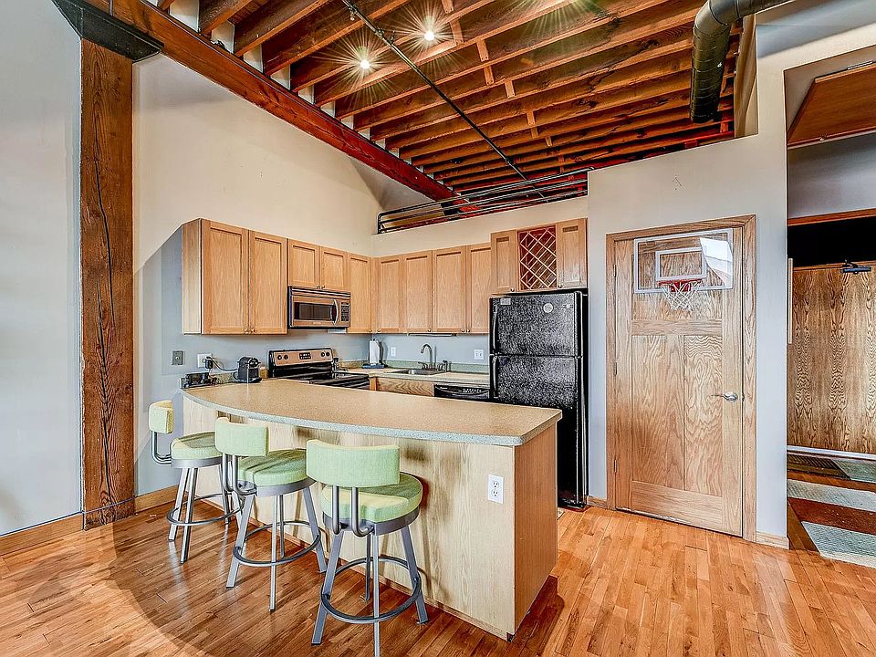 Experience the charm of urban living in this top-floor loft in the heart of St. Paul's Lowertown. The open concept allows sunlight to pour through the windows across the high ceilings, exposed brick, and timber walls, flooding the home with natural warmth.