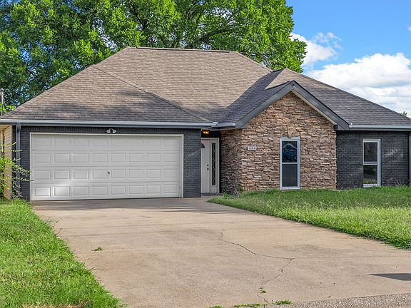 This unique home has a gorgeous exterior! All ranch style home with black brick and stone accent in the front of the home. The rest of the home is vinyl siding. Entrance is a longer hallway leading to the living room that has a stone accent fireplace. Above in the vaulted ceiling are the rooflight/dormers that bring lots of natural sunlight! Leading into the huge eat in kitchen, you can fit plenty of furniture to relax and have gatherings. Very spacious kitchen with lots of cabinet and counterspace! White kitchen cabinets that go all the way up to the ceiling. Drawer that pulls out for double trashcan space and soft close drawers. Huge farmhouse sink! Primary bedroom has a trey ceiling and lots of space! Also has a backdoor that leads outside from primary bedroom. Huge soak in tub and a stand up shower! Double vanities that are separated and a WIC! On the other end of the home are the other 2 bedrooms with a spacious full bathroom. Laundry room is massive! Exiting the back offers a huge covered patio and a storage area. Brand new roof and siding! Close to post, shopping, interstate and much more!