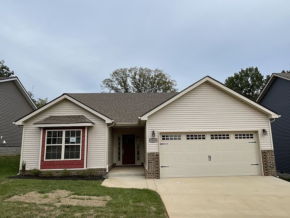 New Construction - The Tucker Floor Plan - minutes from FORT CAMPBELL, Downtown Clarksville or I24 with an easy commute to Nashville. Open concept ranch great for entertaining or spending time with family. The living room has soaring ceilings and a shiplap facing electric fireplace. The kitchen is right off the LR featuring beautiful granite countertops, SS appliances and an extra large island perfect for extra seating. This home is a split bedroom floor plan with the primary separate from the guest bedrooms. Primary ensuite features a trey ceiling and EXTRA large closet. Covered back deck. Epoxy flooring in the garage for a clean look. $17,500 in Seller Concessions with a full price offer.