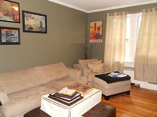 Spacious 2 bedroom, 1 bath apartment in a great location! Large living room & dining area. Hardwood Floors throughout. Kitchen with gas stove and dishwasher. Deck for Summer enjoyment. One off-street assigned parking space. Coin-up laundry. Small trained dog under 25 lbs okay. Walking distance to public transportation, Whole Foods, shopping & entertainment. Good credit and references are required. Available 7/1/2015.