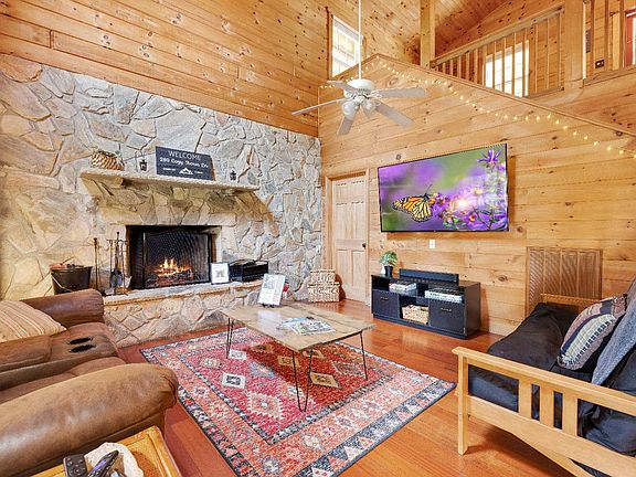 Welcome to the 289Gthis true log cabin is nestled at the end of the road, hillside where nature and privacy abound. Enjoy the mountain views from all levels of the home. But don't let GCozy AcresG fool you. The home is quite spacious with large rooms and lofty spaces. 2 large Guest quarters, full bathroom with laundry is located on upper level. One of the rooms provides a private balcony to escape to. The Loft makes a great study/gaming area. A wood burning fireplace featuring a rock wall enhances your cabin living experience. Flex room and full bathroom located on main level. Enjoy the sounds of nature from main level screened in porch. And don't forget the Marshmallows at the firepit area.
