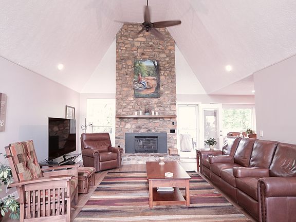 Totally renovated home offers a blend of modern style, high-quality updates, and desirable features both inside and out. The extensive list of new components and included warranties makes it a truly attractive and worry-free option for anyone. Move-in Ready Perfection: With a brand-new architectual roof, HVAC system, ductwork, moisture barrier, windows, doors, and fresh interior and exterior paint, you can move in with complete peace of mind knowing the major systems are updated. * Stylish and Durable Flooring: Enjoy the beauty and durability of hickory luxury vinyl plank (LVP) flooring throughout the main living areas, while the carpeted bedrooms offer cozy comfort. *Impressive Living Space: The living room is a showstopper with its vaulted ceiling and a stunning floor-to-ceiling stone gas fireplace, creating a warm and inviting atmosphere. Floor to ceiling glass windows! The kitchen is designed for both beauty and functionality, featuring recessed lighting, elegant shaker-style cabinets, a spacious 7x10 pantry for all your storage needs, and sleek quartz countertops. All three full bathrooms have been completely renovated with new plumbing, a relaxing soaking tub, stylish vanities, and modern walk-in showers. * Outdoor Oasis: The property boasts a large deck with both covered and uncovered sections, perfect for entertaining or simply enjoying the outdoors. The fenced yard provides privacy and security, and the exterior shed offers extra storage. * Convenient Amenities: The attached 2-car garage provides secure parking and additional storage space. American Home Design warranties provide valuable coverage for added peace of mind. The Southern Roofing contract is a transferable warranty on the.Spacious Lot: Situated on a generous 1-acre lot, you'll have plenty of outdoor space to enjoy. This home offers a blend of modern style, high-quality updates, and desirable features both inside and out. Watch the sunset from the back deck and the moon rise in the living room.