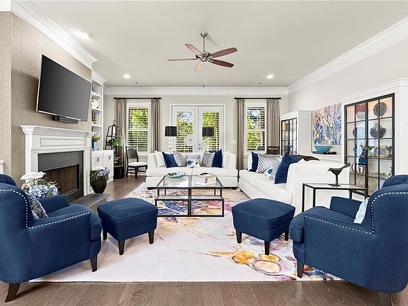 This is an exquisite craftsman home with luxury upgrades throughout in a prime Marietta location! Welcome to 289 Hemphill Lane, a showcase of refined living nestled in a highly sought-after, Active-Adult (55+) gated community. This stunning residence offers more than 4,200+ SF of meticulously finished spaces, is thoughtfully designed with high-end finishes and has numerous custom upgrades throughout. This home features spacious and elegant living, boasting a versatile and open-concept floorplan across three finished levels. A superb flow for both daily life and sophisticated entertaining. Enjoy beautiful hardwood flooring throughout the main level, elegant plantation shutters, designer lighting, and soaring high ceilings that enhance the sense of space and light. The heart of this home is the dazzling open-concept Gourmet Chef's kitchen, featuring premium quartz countertops, top-tier stainless steel appliances (5-burner gas range), large island, and walk-in pantry. Conveniently located opposite the kitchen is an Entertainer's Dream Dining room with open dining, perfect for hosting. It features a stunning custom built-in wet bar complete with wine storage, wine refrigerator, exquisite cabinetry with glass doors and inner and under cabinet lighting. The main level Living Room is spacious and anchored by a cozy fireplace flanked by stylish built-in cabinetry, adding both charm and practical storage. Windows line the back of the living room and French doors lead to a relaxing screened-in covered deck, great for morning coffee or an evening glass of wine. You’ll experience ultimate convenience and luxury in the Main-Level Owner's Retreat. This bedroom offers a serene atmosphere enhanced by a trendy shiplap accent wall, and custom built-in reading canned lights on a dimmer, easily controlled by switches on either side of the bed. Relax by the warm glow of a stone veneer fireplace which serves as a dramatic focal point in this serene retreat. The on-suite bath is a true sanctuary with separate his-and-her vanities, oversized shower, and spacious custom closets, including a built-in jewelry case and full-length mirror. Connected is a dedicated spacious laundry room with 42” cabinetry and built-in utility sink. The main level also features a convenient second bedroom suite with full bathroom connected at the front of the home, perfect for guests and/or a home office. Upstairs living offers both comfort and functional separation, perfect for providing privacy or creating a dedicated second space for family relaxation. There are two spacious bedrooms upstairs designed with comfort in mind, each containing custom-designed closet systems. This level also features a remodeled full bathroom with upgraded fixtures, premium tile and modern vanity. A loft/family room serves as the perfect gathering space or comfortable lounge. The finished terrace level is above grade offering soaring ceilings and walk-out brick paver patio, perfect for expanding your outdoor entertaining with privacy. This level is a highly flexible space, ideal for a home gym, media room, or a spacious separate third living area. There is also a third fireplace on this level in the gathering room and large 5th bedroom with ensuite and vast walk-in closet. This home is nestled on one of the best, private lots in the prestigious, gated community of Longleaf Battle Park which includes; gated access, clubhouse, pool, private walking trail that offers a lifestyle of comfort and recreation. Located with easy access to the historic Marietta Square (12min), Kennesaw Mountain National Battlefield Park (10min), Towne Center Mall (15min), numerous shops, dinning & entertainment with easy access to all major commuter routes. This meticulously maintained, nearly new construction (built in 2019) home is ready for YOU!
