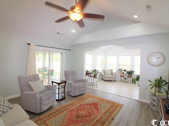 This 3BR/2BA home in Hillsborough is in excellent condition. New laminate flooring in 2022. New roof and HVAC in 2022. The extra-large kitchen features stainless steel appliances, flat top stove, built in microwave & breakfast nook. The refrigerator & dishwasher are less than a year old. The spacious family room has vaulted ceilings, ceiling fan and dining area. Smooth ceilings throughout this home which was built in 2012. The sunny Carolina Room is a great addition that makes this home extra inviting. The home has a split bedroom plan & the master bedroom suite features double sinks, garden tub, stand-up shower and two walk in closets. The 0.27-acre property provides an extra-large back yard. The screened in back-porch has clear vinyl sliders to serve as an all-weather room for the rare cold or rainy days. The garage has an extra refrigerator which will convey. HOA amenities include a community pool, playground, weekly trash-pickup, cable & internet. The Hillsborough community is just off of Highway 90, less than a mile south of International Drive and a short 5 miles from downtown Conway.