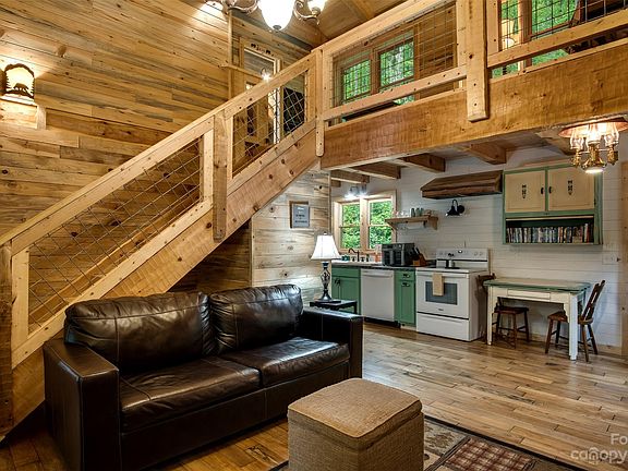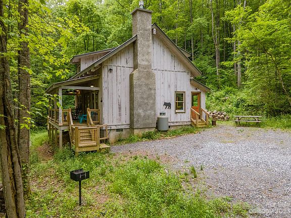Tucked away in the woods of Sylva, NC is this beautiful and unique cabin with over 2 acres. Enjoy the sounds of babbling brook from the covered porch that leads to the hot tub and firepit area for entertaining. The interior features beautifully reclaimed barnwood throughout, along with other custom features. The property includes a 26x35 metal workshop/garage with plenty of space for parking, or storage. This home is currently established as a short-term rental and is being sold fully furnished. Come enjoy the mountain sounds in your new cabin!