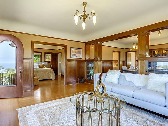 2 Homes one lot! Pacific Grove's iconic "The Boulders" & Birdhouse with ocean views! The medieval stone wall, huge wooden gates w/decorative iron work, & California mountain lion figurine, are like a fortress presiding over the Monterey Bay. Inside a quiet world away, awe at the commanding views from Monterey to Santa Cruz, sail boats glide past, whale watch and enjoy a good book. Old world finishing touches surprise at every turn; beveled glass, mirrors, stained glass, built ins, mahogany paneling, w/vast beveled picture windows. All new kitchen, baths, laundry/mud room, and an all new build 2br/2ba second home, "Bird House". The grounds are weaving pathways, perches, a bubbling pond, custom mosaic artwork & totems, w/lush blooming gardens surround. 2 homes one large lot!. "Bird House" i.e. 2 person infrared sauna, on trend cork flooring, views of Lover's Pt. 22 solar panels provide 9 KW of power to both homes. Bonus 476 sq ft unfinished basement NOT included in sq ft. Welcome home!