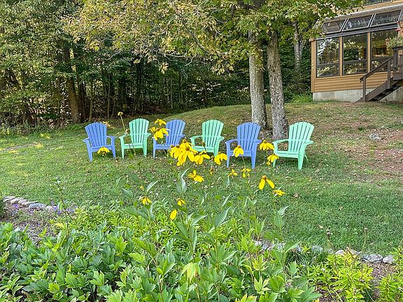 This is a sweet 4 Bedroom/4 Bath contemporary situated on a double, 2.2 acre, located at the end of a private lane right off the Sugarbush Access Road. Built in 1993 by the current owners, the two lots were merged, providing a lovely combination of wooded privacy overlooking a wide open meadow with a sunny eastern exposure. Abutting the property to the north is a 125 acre tract owned by Sugarbush Resort which is also home to the large snowmaking pond and a smaller pond that is adjacent to the property line and walkable from the meadow in front of the house. Inside there is a sunny, light- filled living and dining area, with vaulted ceilings, a huge expanse of windows and glass, hardwood floors and a wood stove for winter warmth and ambience. A generously sized kitchen, a bedroom and an adjacent full bath complete the main floor of the house. Upstairs, there are two ensuite bedrooms with baths including the primary bedroom that features a cathedral ceiling with a lovely arched window looking out to the meadow. The large fourth bedroom, 3/4 bath and laundry is located on the lower, walk-out, level where there is also a spacious, partially finished entry room, currently serving as a mudroom. A well pumping out 20 gallons per minute and a brand new furnace and hot water heater are sure to service a houseful of family and guests! Showings start Friday, September 8.