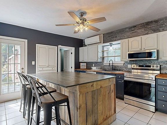 Wood stoveUpdated mini split systemsWoods viewLarge kitchen islandShaker cabinets
