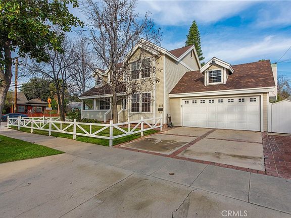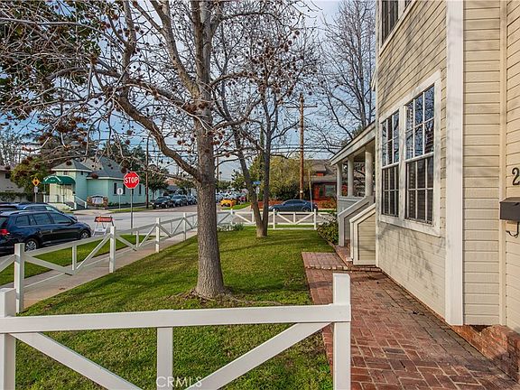 One of the newest corner lot homes in Old Towne Orange built in 1988. Walking distance to the Orange Plaza and Chapman University. This is a 4 Bed 3 Bath home that is over 2,300 sqft inside, with a large 2 car garage with a refinished floor. Outside the front door you have a comfortable refinished wood front porch looking out to Palm Ave and Cleveland St. Inside you have an open floor plan with hardwood floors and carpeted upstairs. Off the entry you have a formal dining area with a built-in china hutch, and on the other side you have a den with dual pocket doors that has been used as a 4th ground level bedroom. You also have a half bathroom located down the hall from the formal dining room. Downstairs you have a living room with a recessed media inset alongside a gas fireplace. The kitchen features stone counters ,tile backsplash, breakfast bar, built-in JennAir down draft gas stove/oven with a convection microwave, Whirlpool refrigerator, trash compactor, and dishwasher. You have direct access to the 2 car garage from the kitchen, which you'll find newly refinished epoxy garage floor with washer, dryer, and water softener. Upstairs you have 3 bedroom, all with walk-in closets, and carpeted. The main bedroom upstairs has a tile accented gas log fireplace with a connected bathroom that has dual sinks with stone counters, seamless glass walk-in shower, and a large soaking tub. In the backyard you have 2 patio areas with a small artificial turf run on the North side of the house with a split rail fence. The home also features central air conditioning with a smart thermostat, dual option key/keyless entry, sprinkler timers, and water softener. Owner can provide home will all displayed furnishing or without.