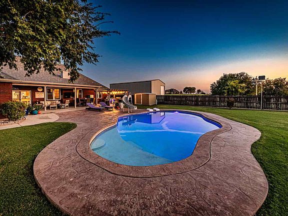This designer home is a showstopper you won't want to miss! Not to mention, it comes with all the bells and whistles! If you love cooking, entertaining, or just relaxing on the back patio, watching the sun go down, this is your next home. Where else can you find an almost 3,300 square foot home with a pool, 30 x 40 shop that fits an RV, outdoor kitchen, almost 3 acres, a safe room, a bonus room/currently man cave, and so much MORE!!