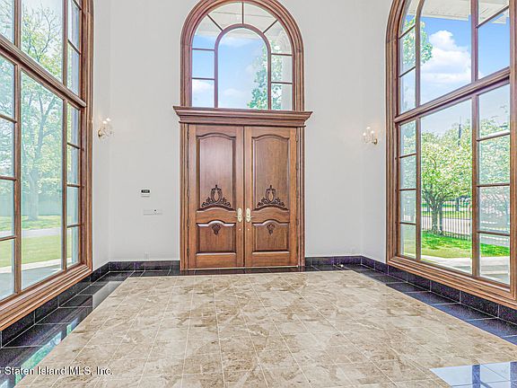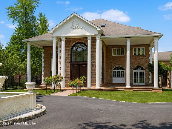 A magnificent all brick 11 room custom built mansion offering 7,800 square feet of luxury living on almost a full acre of lush, manicured grounds. (33,640 sq ft.) This grand three-level estate welcomes you through a lavish electric-gated entryway. leading to a stunning front courtyard and an impressive formal entry foyer. 1st Level: A pristine new neoclassic kitchen appointed with Viking and Sub-Zeo appliances, exquisite marble floors and exceptional craftsmanship throughout. a gracious living room, elegant formal dining room, family room w/cathedral ceilings, marble fireplace, library, bedroom suite, powder room, spacious sun room overlooking the park-like property, and a 2 car garage. 2nd Level: Regal primary suite, fireplace, lavish bath, 2 walk-in closets, plus 2 additional bedrooms and full bath, 3rd Level: Huge Open Sky-parlor - perfect retreat for relaxation or additional bedrooms. This estate offers a separate one bedroom guest house, ideal for extended family or VIP guests. The expansive grounds offer a sparkling in-ground heated pool, and a custom designed yard perfect for weddings, celebrations and unforgettable outdoor entertaining. Minutes from the bridge, parks, top schools, and fine restaurants.- making it all as convenient as it is luxurious. Experience the finest lifestyle Staten Island has to offer.
