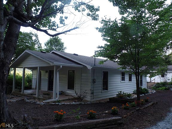 Updated cottage and artist studio nestled in approximately 4 acres with mountains views! The charm welcomes you on this landscaped level lot with privacy. Front porch entry into open floor plan with original wood floors throughout. New kitchen work island and open to family room with nook for office or additional eating area. Three bedrooms share large full bathroom. Rear covered porch and laundry room. Double carport for parking along with 10X14 storage building. Detached 350 sq ft building ideal for artist studio or workshop. Plenty of room to be your own developer and build another home. Excellent location and investment in picturesque Northeast Georgia mountains.