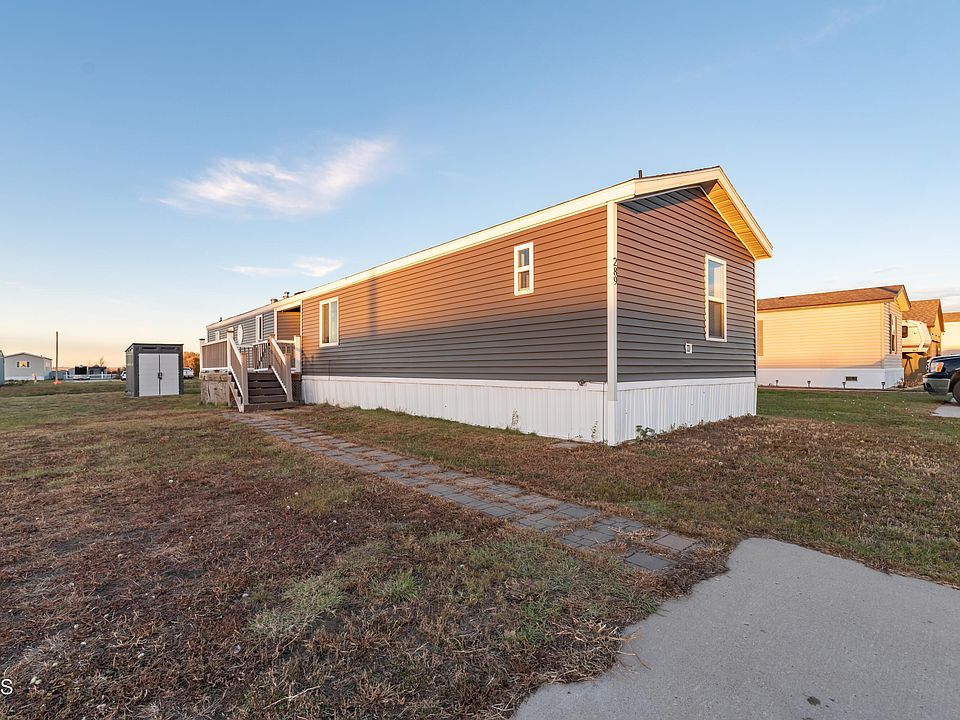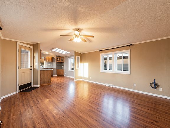 This 1995 mobile home in Apple Creek Park offers 3 bedrooms, 2 full bathrooms, and several exterior upgrades. Situated on a generously sized lot, the property features a three-vehicle parking pad, a brand-new storage shed, a maintenance-free deck, updated windows and siding, and newly installed heat tape. Inside, you'll find a large, open living area that flows into the dining room and kitchen. The kitchen provides plenty of cabinetry, excellent storage, and direct access to the laundry room with a convenient side entrance. The north side of the home features a spacious primary suite with a full bathroom and soaker tub. The south side includes two additional bedrooms and a second full bathroom. Affordable, updated, and move-in ready! Buyer must obtain park approval.