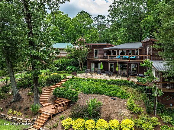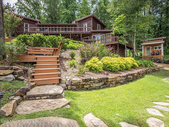 Welcome to Lake Martin! This beautiful home offers breathtaking lake views from every room and is perfect for entertaining with its large flagstone patio, newly installed wrap-around walkways, balcony, and beautifully manicured yard. The updated kitchen features new cabinetry, granite countertops, stainless steel appliances, and tile flooring. The game room, sunroom all finished with cedar shakes and heart pine flooring, create a cozy cabin feel. Upstairs, you'll find ample space with two bedrooms, a full-size bath, and spacious loft area. Both upstairs bedrooms offer direct access to a walkout balcony with panoramic lake views. This home is situated on the northern end of the lake in a low-density area, ideal for boating, swimming, and recreation. Conveniently located near North River.