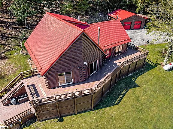 Escape to your own private retreat with this stunning log cabin nestled on 8 serene acres. Just a short 20-minute drive from town, this home offers the perfect balance of seclusion and convenience. Enjoy almost 500 square feet of deck space, ideal for soaking in crisp, quiet mornings surrounded by nature. Inside, you'll find 3 spacious bedrooms and 3 full bathrooms, along with ample storage throughout. Need extra space? Two additional rooms offer flexibility to be transformed into a home office, den, or guest space. The finished basement provides the perfect setting for entertaining, movie nights, or hosting guests. Whether you're looking for a peaceful full-time residence or a weekend getaway, this property offers the charm, space, and tranquility you've been dreaming of.