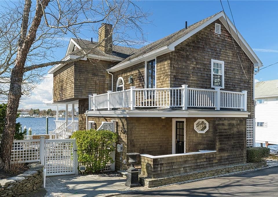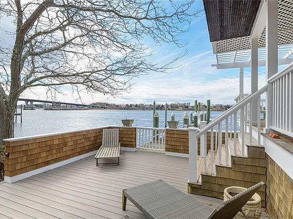 "A Sailors Dream" is an exquisite waterfront property nestled on the shores of the Sakonnet River, with panoramic westerly views of the Tiverton Basin/Mount Hope Bay and beyond. Deep-water dock, ideal for boats of varying sizes with access to marinas. This custom-built home features 3 bedrooms and 2.5 baths spanning 2,133 sq.ft., with an additional 1,400 sq.ft. of outdoor living areas, incl. a screened porch, multi-level decks, and patios. Its distinctive architectural design evokes the sensation of being aboard a boat, with sunlight-filled spaces and panoramic water views from every room. Gorgeous private lot with perennial gardens, mature trees, featuring a charming brick path leading to a cozy cottage with wood stove. This versatile space presents endless possibilities, whether utilized as an art studio, guest quarters, or sanctuary. The location is ideal for kayaking, boating, paddle boarding, fishing, swimming or simply watching regattas and boats slowly pass by. The property seamlessly combines seaside living with accessibility to urban amenities. Minutes from yacht club, bike path, marinas, fine dining, sandy beaches, golf, farmstands, & Historic Tiverton Four Corners. Easy access to highway, 30 min. to Providence/Newport; 1 hour to Boston. Discover the serenity and splendor, where each day unfolds as a cherished vacation retreat, with its unparalleled blend of entertainment, relaxation, and coastal ambiance. This residence epitomizes the essence of waterfront living