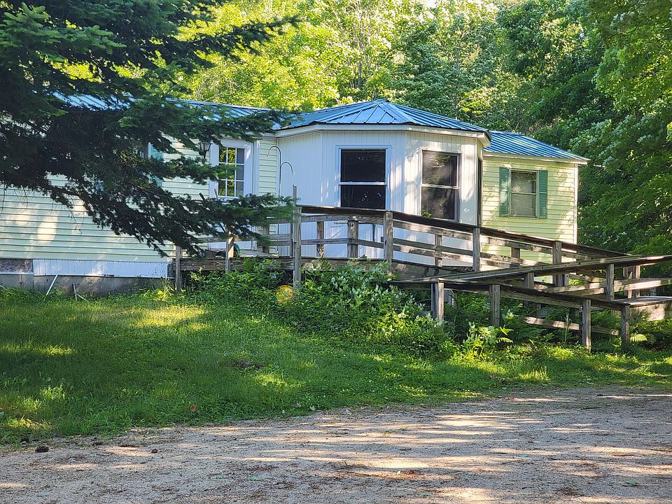 Single wide mobile has full foundation under and bump-outs allowing for more space. Overgrown gardens and grounds needs some TLC. Nice level lot. The home is being sold in 'as is ' condition. Lots of hiking trails, streams and ponds near by.