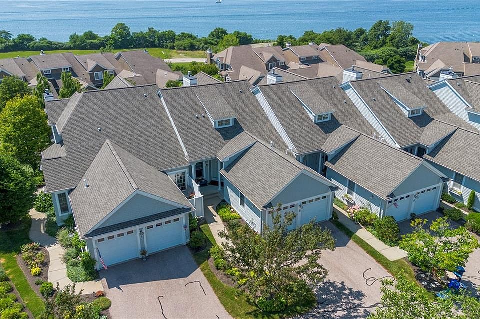 Discover an incredible opportunity in the highly sought-after Villages on Mt Hope Bay. Located on Village Road, this light-filled Sakonnet-style townhome offers a prime location within walking distance to the clubhouse, providing stunning western water views and beautiful sunsets. Ideal for entertaining, this unit offers a beautifully designed kitchen that flows into an open-concept living room with a gas fireplace and formal dining area. The main level showcases a spacious primary bedroom with an ensuite bath, a convenient laundry area and a private office off the entrance foyer. Upstairs, you'll find an additional bedroom suite with a walk-in closet and a family room with balcony views, perfect for accommodating guests. Enjoy the cool ocean breezes from your deck as well as from your private walkout stone terrace. The Villages on Mt. Hope Bay, a gated 55+ community, provides exceptional amenities, including a clubhouse, swimming pool, tennis courts, hiking trails, a fishing pier, a dinghy dock, and an upscale restaurant. Professionally managed and conveniently located off RT 24, with easy access to Providence, Boston, and just a short drive to Newport or Bristol, this community ensures both luxury and convenience. Not to be missed—schedule your private tour today! Estate sale.
