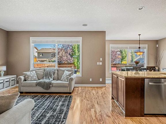 Welcome to this beautifully maintained 2-storey home loaded with upgrades and thoughtful details throughout. You will immediately notice the pride of ownership upon entering. The main floor features an open-concept layout with laminate flooring that flows seamlessly through the kitchen, dining, and living room. The meticulous kitchen is designed with a large central island, rich maple cabinetry, granite countertops, stainless steel appliances and under-cabinet lighting joined by a convenient walkthrough pantry that connects to the spacious mudroom. The inviting living room is filled with natural light and centred around a cozy gas fireplace, while an office nook and 2-piece bathroom complete the level. Upstairs, you’ll find a generously sized bonus room with vaulted ceilings, a 4-piece bathroom, and three comfortable bedrooms. The primary retreat showcases a spa-like ensuite with a tiled shower, oversized soaker tub, and a walk-through closet that connects directly to the laundry room. The fully developed basement is the perfect entertainment hub, complete with a custom media wall, built-in speakers, wet bar, and a 2-piece bath with heated floors. Outside, enjoy the large backyard & deck—ideal for summer evenings. The oversized double attached garage offers an epoxy floor and exposed aggregate driveway. Additional upgrades include Gemstone exterior lighting great for the holidays, built-in speaker system on all three floors(plus the deck), Central Vacuum system, garburator, Hunter Douglas blinds, smart thermostat, newer roof, (2021) washer and dryer (2021) hot water tank(2020), and dishwasher(2020) Located close to schools, parks, shopping, and restaurants—this home truly has it all! Don’t miss you opportunity to purchase this turn-key family home!