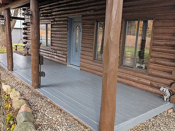 A pleasure to view and would even be better to own!!! 16 Acres (10 are tillable and set aside in the CRP which gives you a nice check every October). A hunter's paradise with 1/4 acre fenced in pond, 3.9 acres of woods, and creek. A true cedar log home with a beautiful stone faced wood burning fireplace, rough sawed cedar interior, heavy/thick ship lap kitchen flooring. The entire home has been restored in the last 1 year. Some features include: 14X24 master suite updated in 2025 with walk in closet, updated lighting and window dressings, updated bathroom in 2024 with claw foot bath tub, updated laundry room in 2025, and all new plumbing and water heater in 2025.