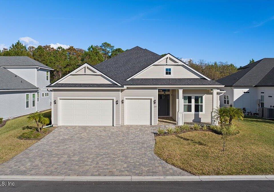 Welcome to an impressive Riverside Homes creation that brings modern design to life with a level of comfort you can feel the moment you step inside.Thoughtful details, open spaces & inviting finishes lead you toward a backyard featuring a gas-heated saltwater pool, spa & wooded view.This spacious home features elegant tile flooring throughout the main living areas, creating a seamless flow & easy maintenance. Just off the main gathering room, a versatile flex room offers endless possibilities, ideal as a playroom, home office, gym or media space At the heart of the home, the beautifully designed kitchen showcases quartz countertops, walk-in pantry, gas cooktop & layout that opens directly to the family room perfect for everyday living & effortless entertaining. Unwind after a long day on the covered patio or in the pool & spa!Located in a sought after community within the 32092 area, this property blends modern luxury, function & lifestyle. Located in a sought-after community within the 32092 area, this property blends modern luxury, function, and lifestyle. A beautifully crafted home with outstanding indoor and outdoor living ready for its next owner to enjoy.